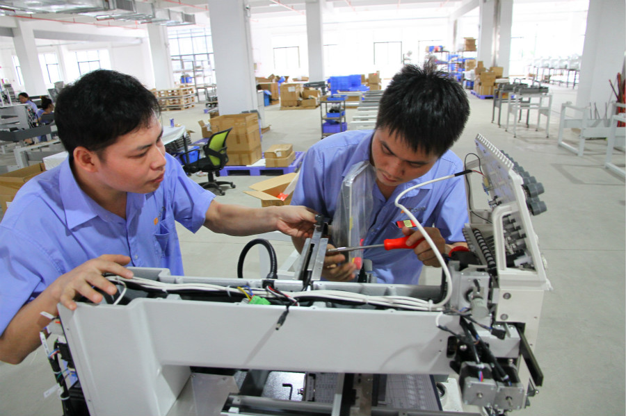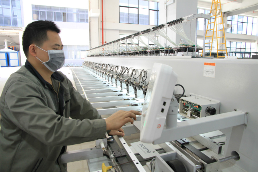 ▲繡花機(jī)組裝