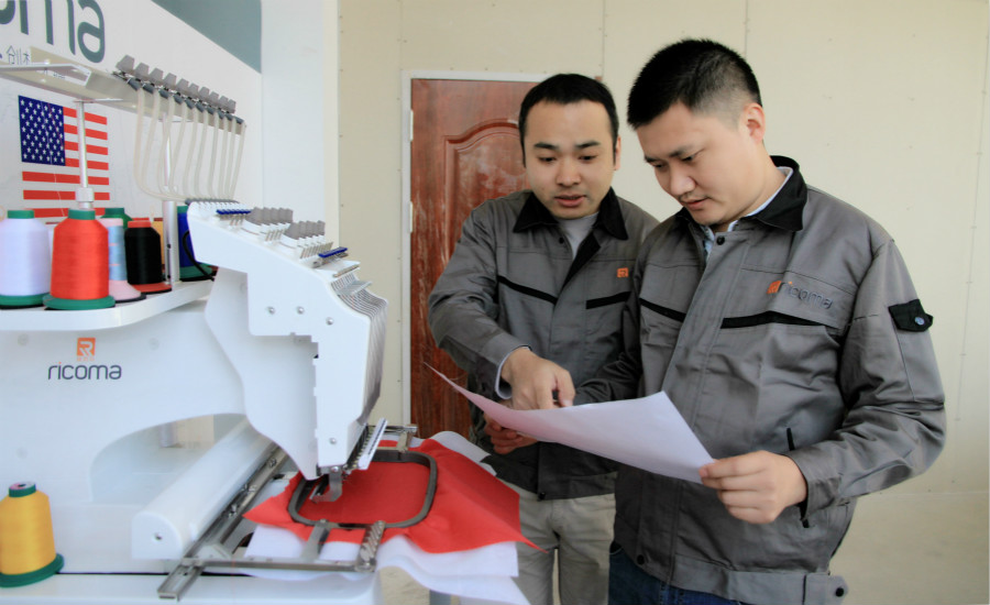 ▲為繡花機(jī)做調(diào)試